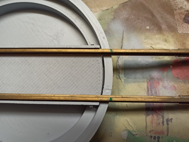 La partie pont est vraiment tout juste pour accueillir de la voie LGB en 45mm de large. J’ai donc collé directement les fils de rail sur le pont après les avoirs coupés à la bonne dimension :